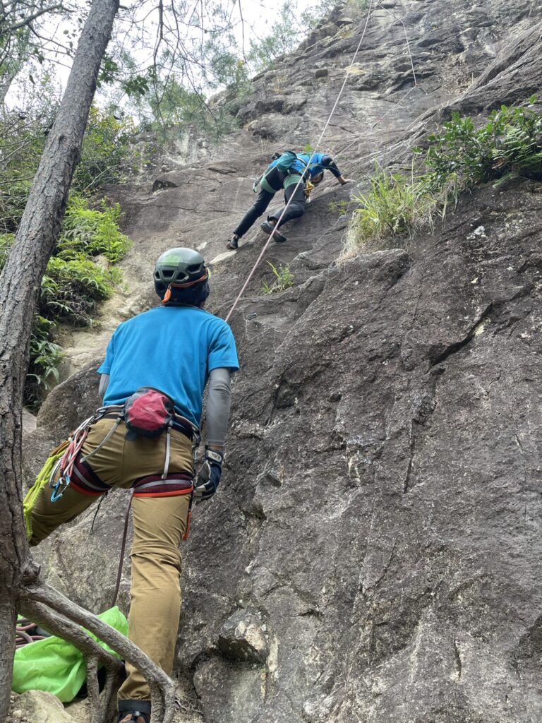 2025.09.28:C班例会9月は道場の不動岩。シアターとスカーフェースに分かれてフリークライミング。