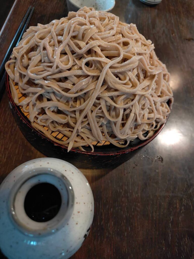 長野県佐久市の岩場にクライミング遠征。初日は雨模様で観光して大盛りそばで満腹。