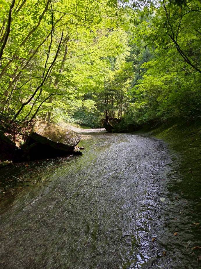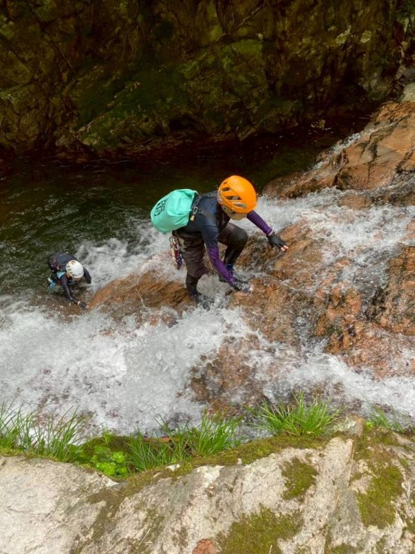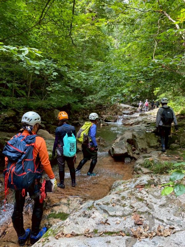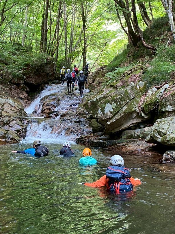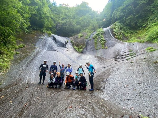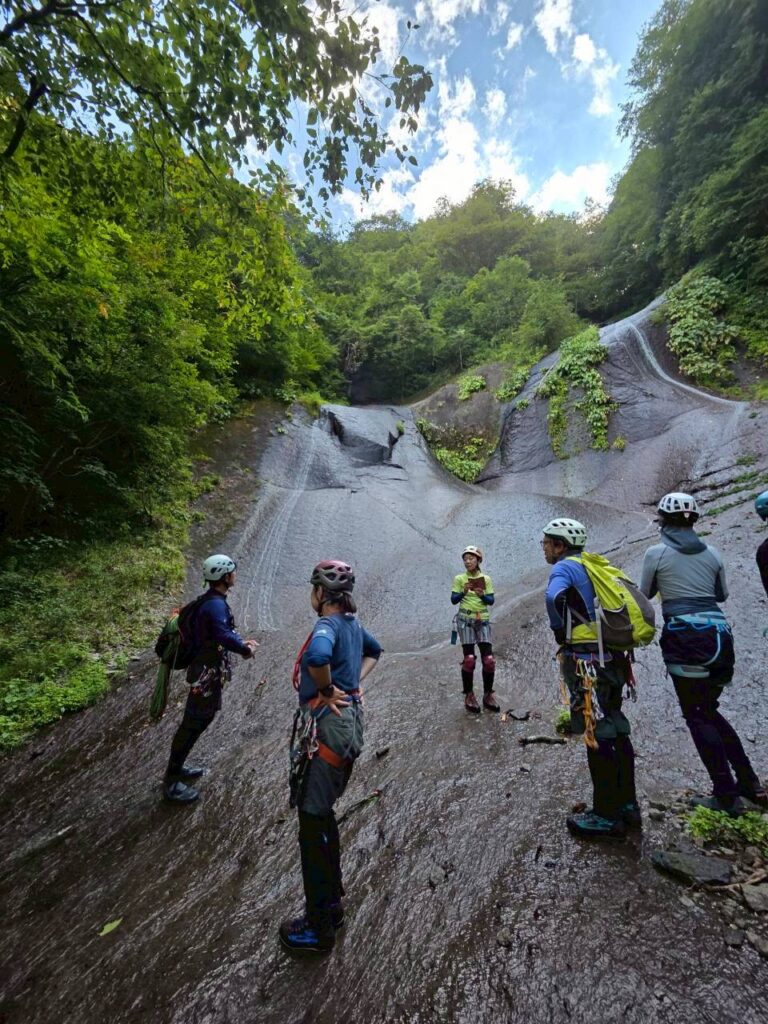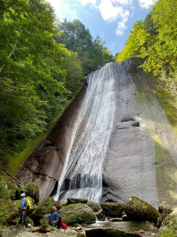 夏限定の沢を楽しむために、ここ岐阜県までやってきました。この沢上谷(ソウレ谷)は岐阜県高山市にある高原川の支流の沢です。山全体どうなっているの?と思うくらい、滑なめナメ床だらけの沢です。見所は壮大な3つの大滝。今年は晴天続きのせいか、水が少ないそうですが、それでも迫力ある滝を見ることが出来て大興奮です。