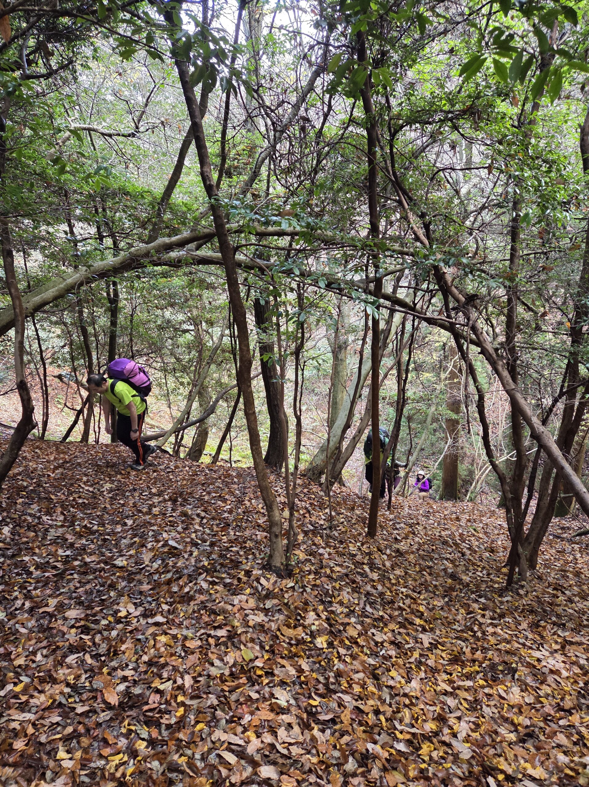 北斜面は一面が落ち葉だらけ 落ち葉でルーファイも一苦労です 冒険心くすぐられる道もあります