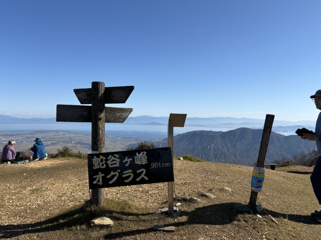 頂上では天気も良く360度のパノラマ。琵琶湖方面を見ると田園と森の組合せによる“蛇”の姿をはっきりと見ることができました。