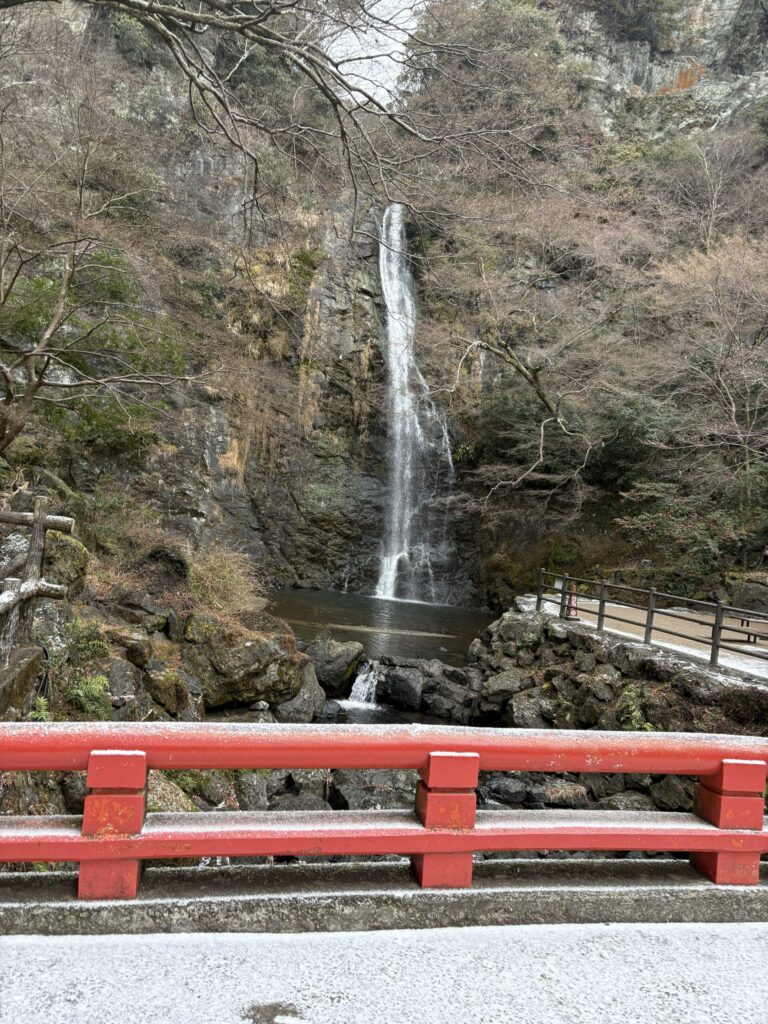 2026年1月31日 参加者13名 行程:阪急箕面駅(8:11)~(9:09)箕面大滝 ~(9:56)ビジターセンター~最勝ヶ峰(11:30)~(12:47/昼食/13:02)勝尾寺園地~(13:16)勝尾寺山門➡バス➡箕面萱野駅 距離10km 累積標高上り625m/下り382m 行動5時間 天候:箕面駅から道中ずっと小雪、勝尾寺園地で昼食中は吹雪。